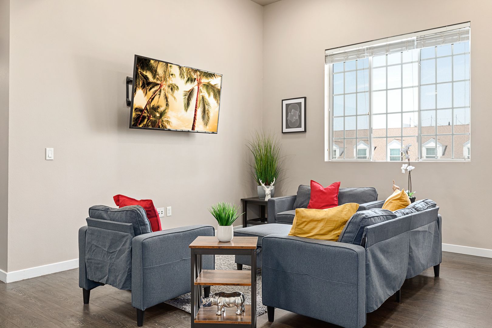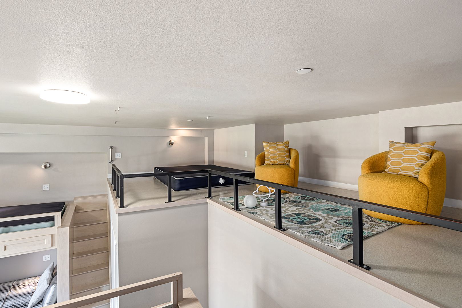 • The interiors boast vaulted ceilings, air conditioning, in-unit full-size washer and dryer, and in-unit laundry. The living rooms and bedrooms are spacious and furnished with custom-built queen-size beds and lofts, and hardwood flooring.