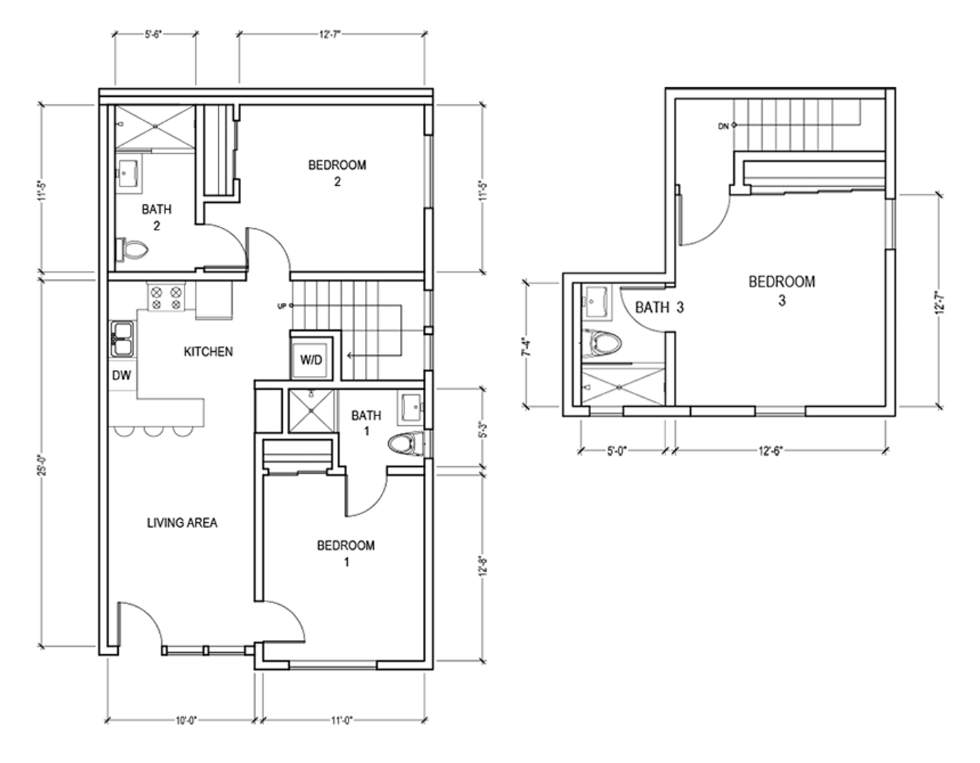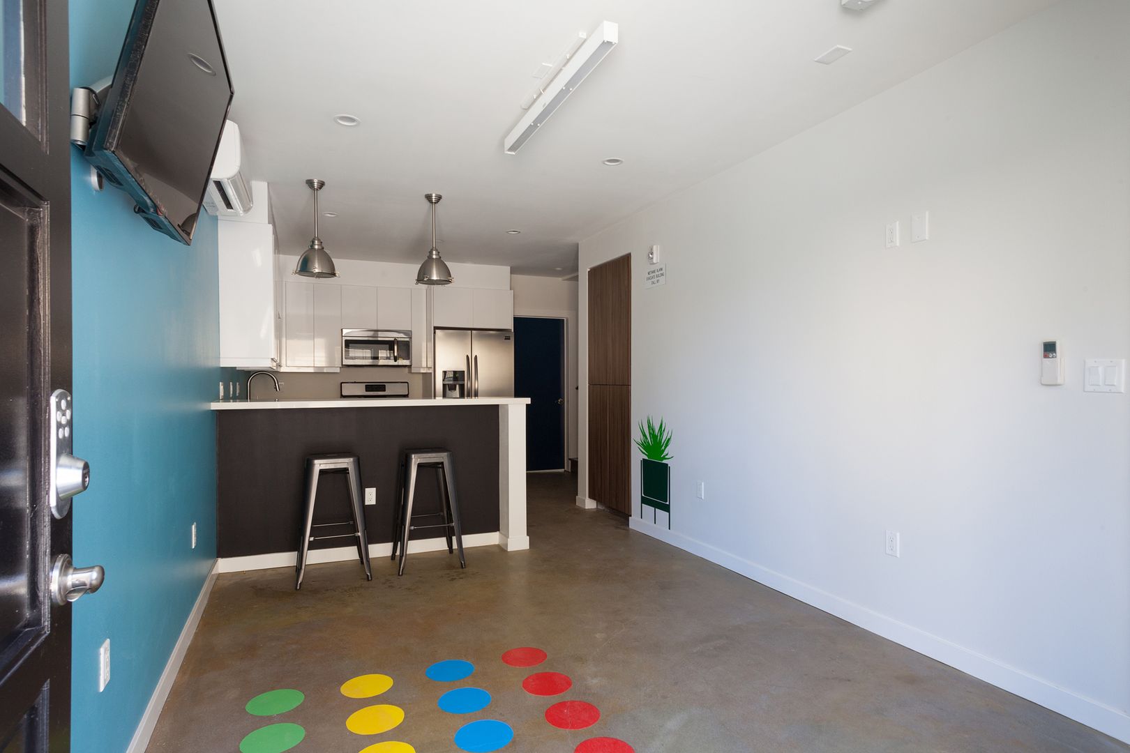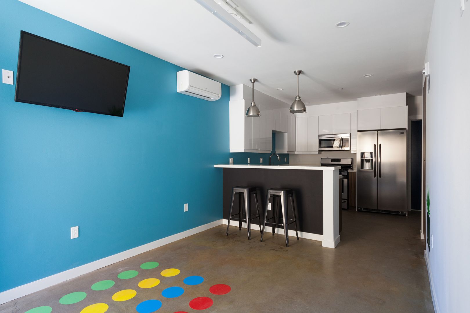 Each unit includes a private exterior entry and unique floor plans that cater to each student’s tastes and preferences and which help create a sense of individuality for each unit and tenant. From large, private front yards to decks that overlook the outdoor lounge area, and from five to three-bedroom units, the Dee Jay has something for everyone.