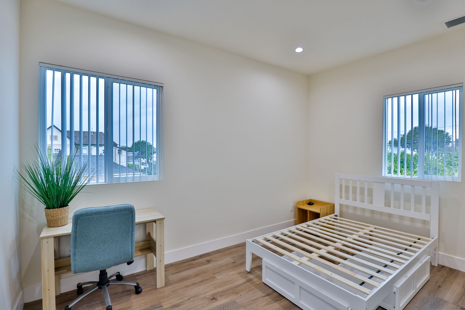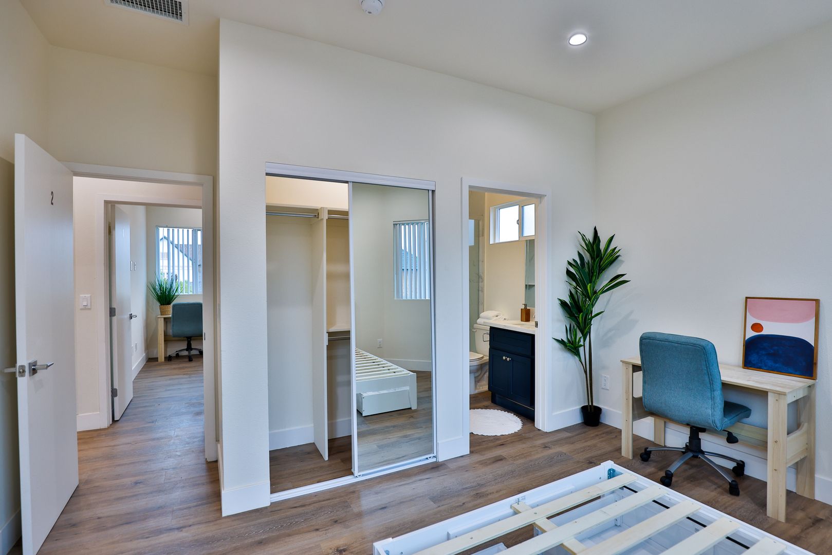 It is a brand new beautiful property with a great kitchen/living space! The Common Areas and Bedrooms are furnished. Our brand new apartments are close to USC and Ralphs! You also get a full bed, desk, and a wardrobe/closet. Bring a friend!! You may rent the entire room out for yourself or with someone else :)
