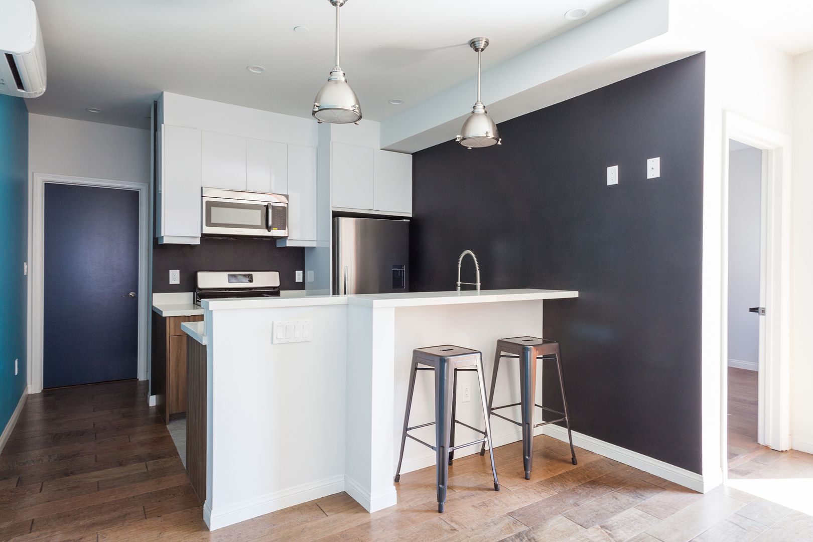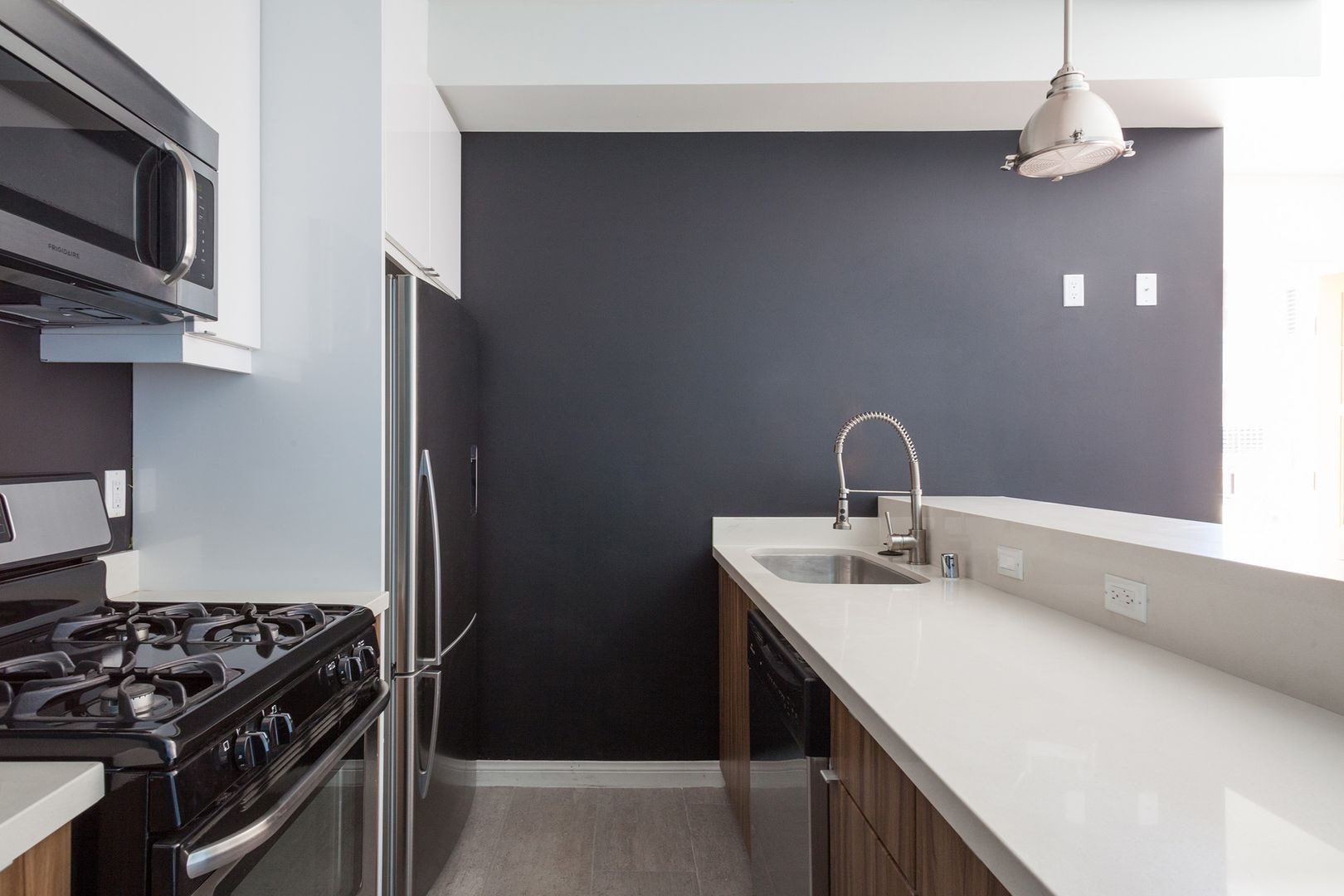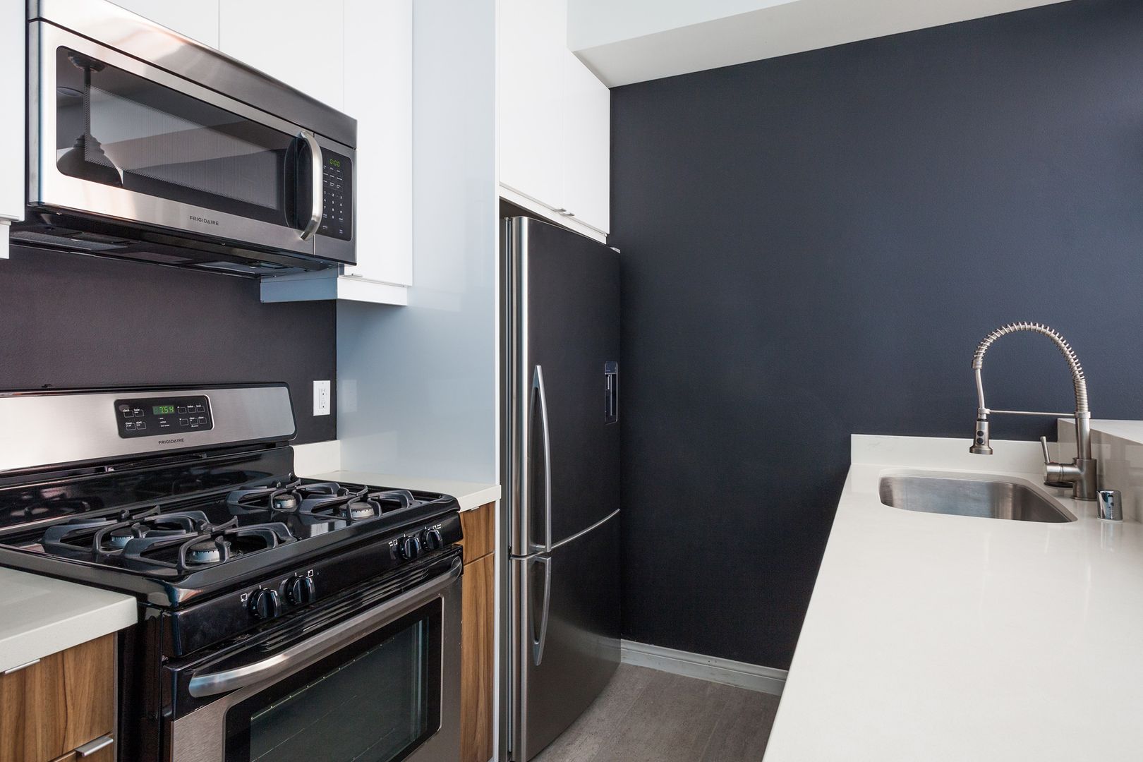 • The apartment also includes regular closets, AC, stainless steel appliances, fully equipped kitchens with granite countertops, and in-unit laundry.