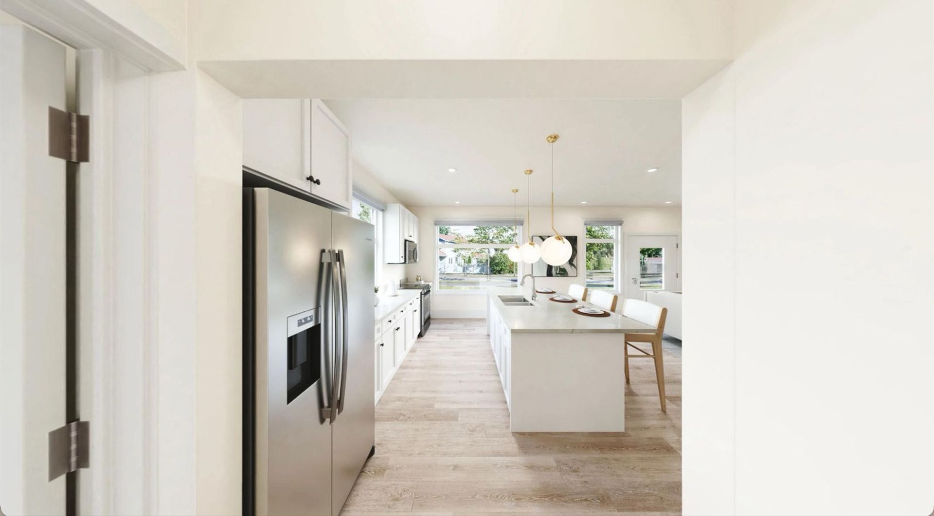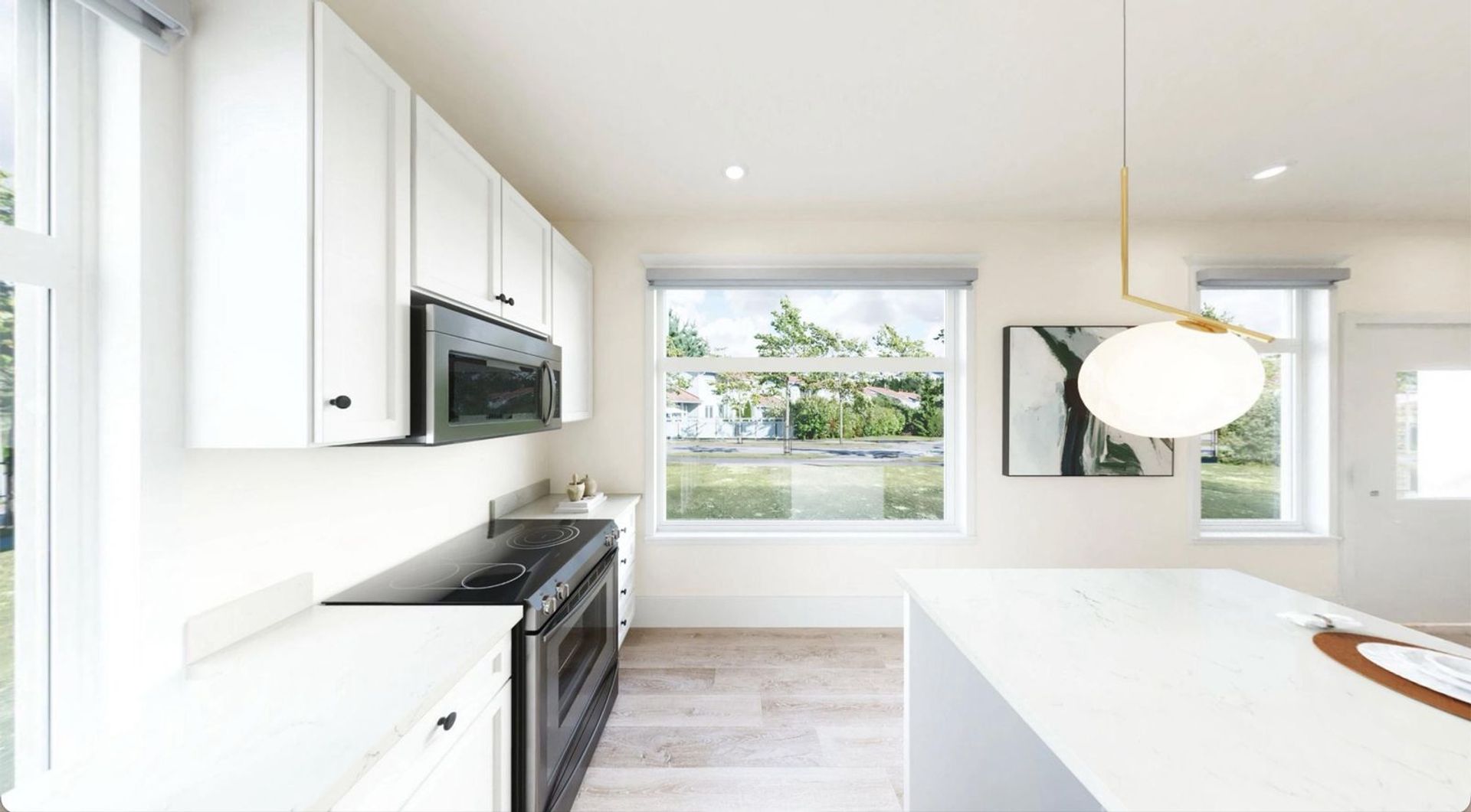 • Modern Kitchen: Equipped with a gas cooktop, dishwasher, and tankless water heater for efficiency and ease.